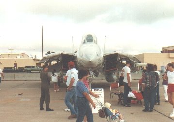 Image Courtesy of Bill Hammond F-14A VF-111 NL 211 at Cannon AFB, NM Sept 89. A/C is overall glossy gray with black Sundowner markings, full color US insignia and A/C markings.