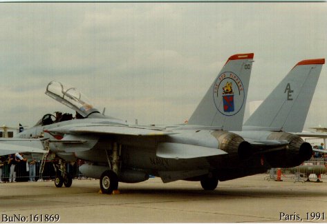 F-14A-GR-130 BuNo. 161869, VF-11 USS Forrestal Paris Air Salon 1991 Image Courtesy of Thierry van Pevenae