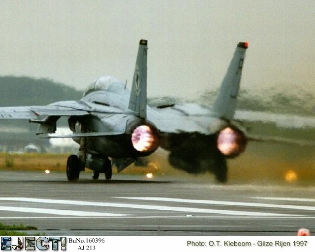 Image Copyright EJECT Aviation Archive. Photo O.T. Kieboom F-14A-95-GR BuNo.160396 VF-14 sent an aircraft to the 1997 Gilze-Rijen airshow.