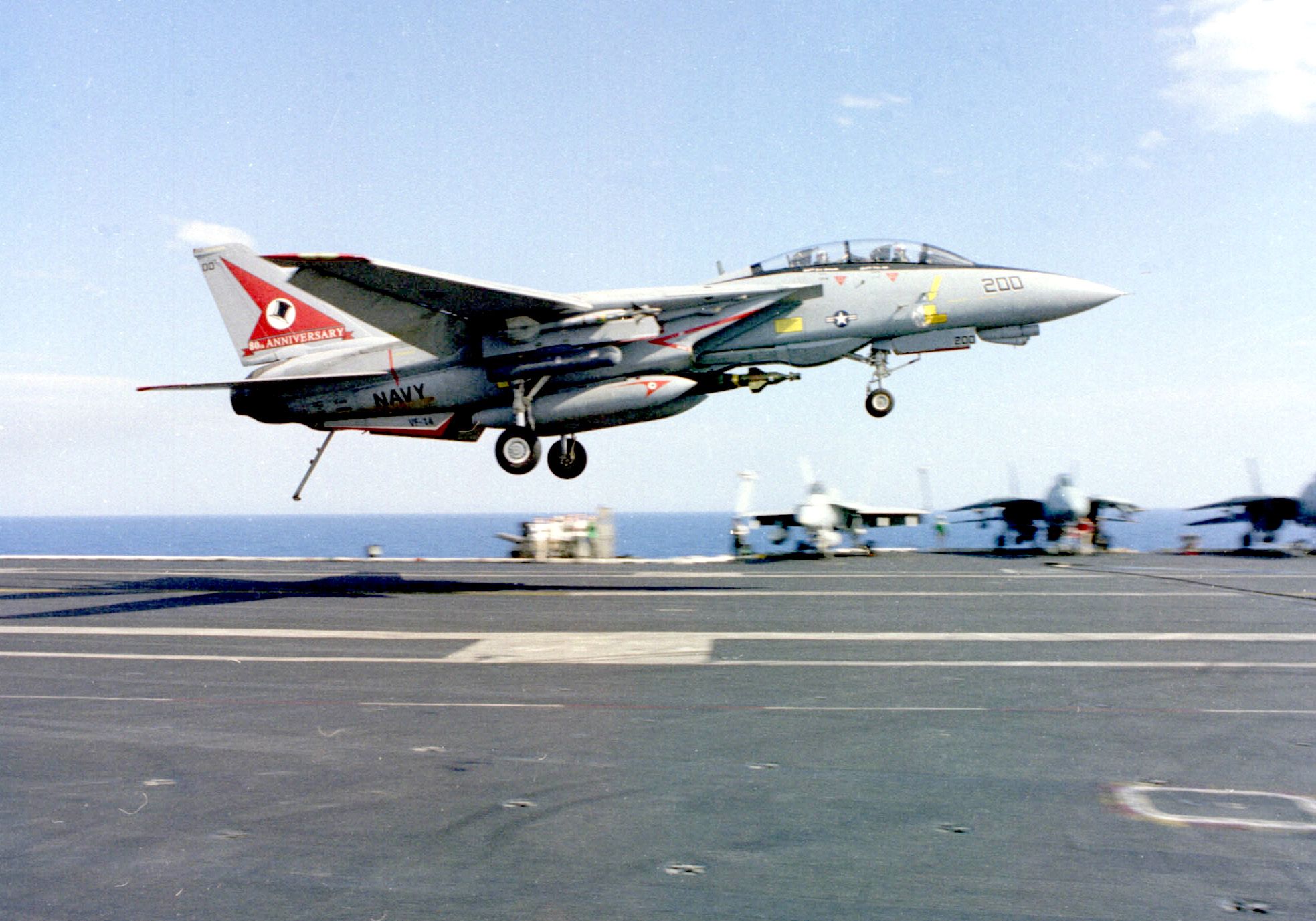 US Navy Photo Courtesy of the VF-14 Website AJ200 comes aboard USS Theodore Roosevelt (CVN-71) after an Allied Force sorite.