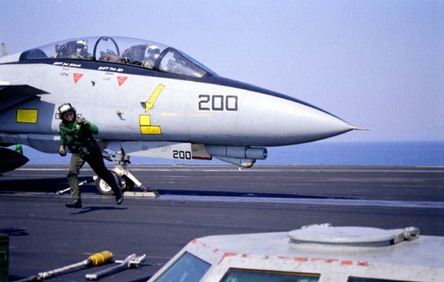 US Navy Photo Courtesy of the VF-14 Website AJ200 about to launch from USS Theodore Roosevelt, CVN-71, Adriatic Sea, Operation Allied Force, Spring 1999.