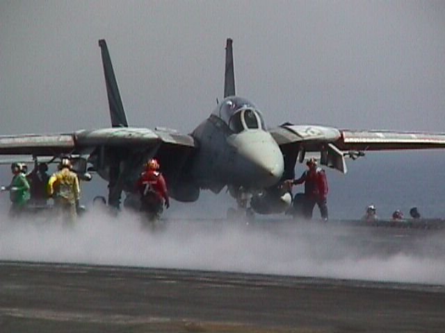 U.S.Navy Photo, Courtesy of VF-154. Prepraring to be shot from the wasit cat. Persian Gulf, early 1998, during Indy's last operational cruise.