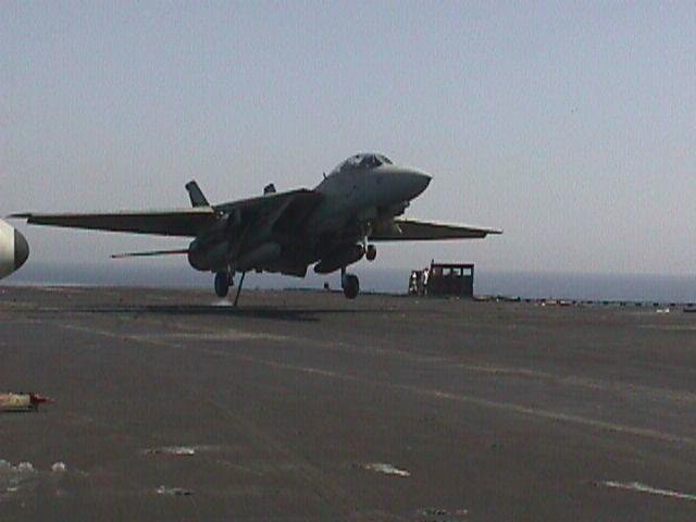 U.S.Navy Photo, Courtesy of VF-154. Just a few more yards to go. Persian Gulf, early 1998, during Indy's last operational cruise.