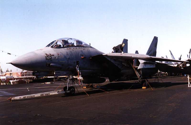 NF102 sits on deck of USS Kitty Hawk during an August visit to Perth.