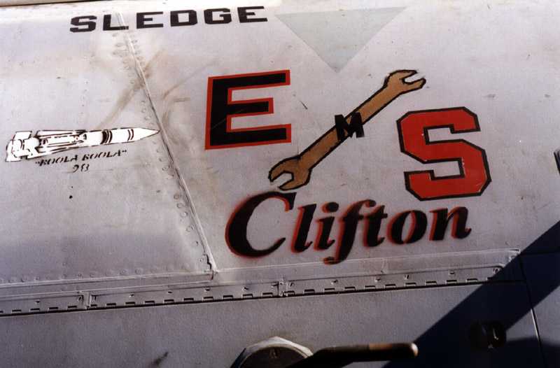 Close up of the Battle E, Safety S, Clifton and Boola-Boola award markings. Even more impressive