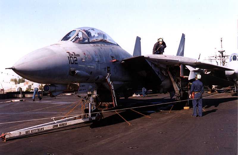 Image Copyright Rodger Kelly. Crewmen at work on NF102 (Tina Rose), Perth harbour, early August 1999. USS Kitty Hawk, CV-63.