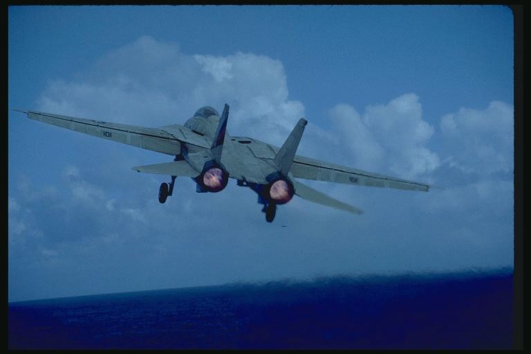 Image Courtesy of the Integrated Security Systems Page A Black Knight F-14 is fired from the cat using full afterburner.