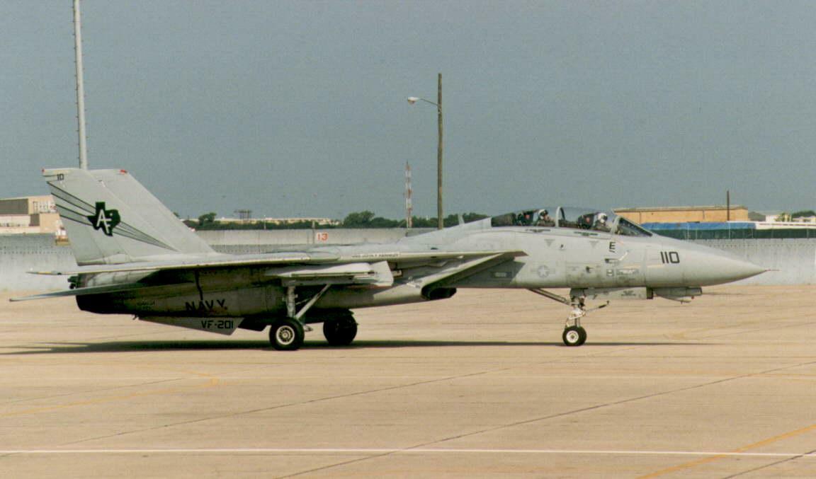 Image Courtesy of Paul Geary F-14A-65-GR (originally, since modified to F-14A-130-GR). BuNo. 158634 AF110 rolls out for the 1998 JRB Ft. Worth airshow.
