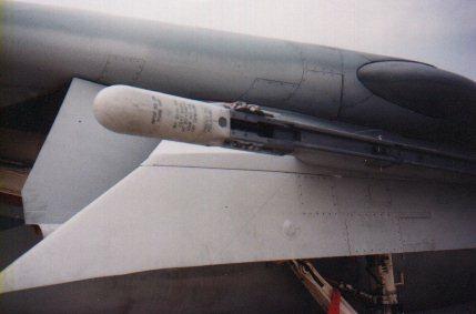 Image Courtesy of Bill Hammond F-14A-115-GR BuNo 162600 new missile rail, showing the colling gas container. NG106 20th May 98, Cannon AFB