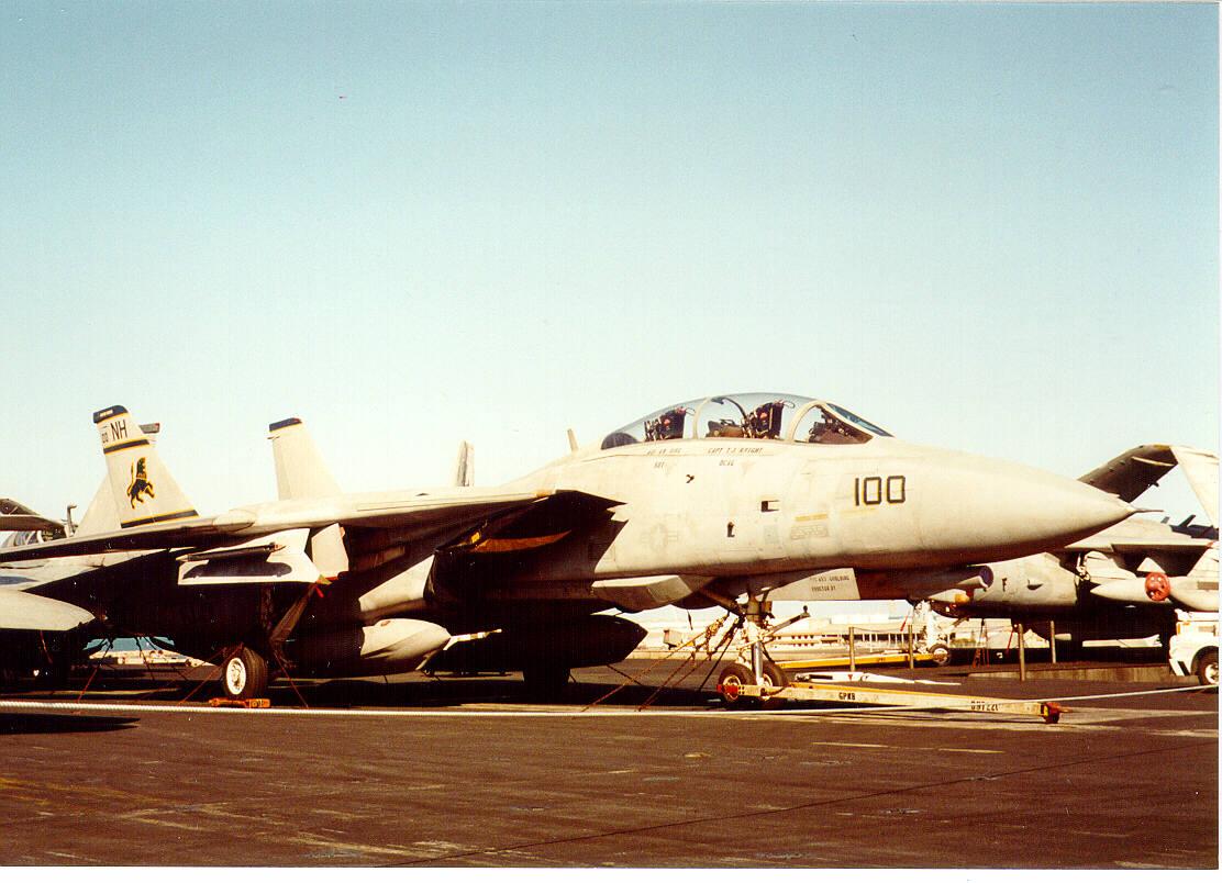 Great shot of Blacklion 100 on USS Kitty Hawk (CV-63) in the summer of 1997. This was the Blacklion's last cruise with the F-14A, they are now switching to the F-14D.