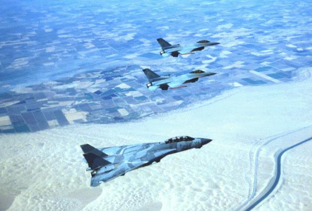 returns from a 2v2 ACM engagement over the Yuma TACTS range. VF-126 F-16N's are flown by