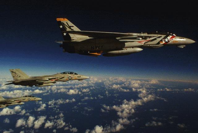 30th December 1987. F-14A's from VF-2 formate after flying off USS Ranger (CV-61). At the end