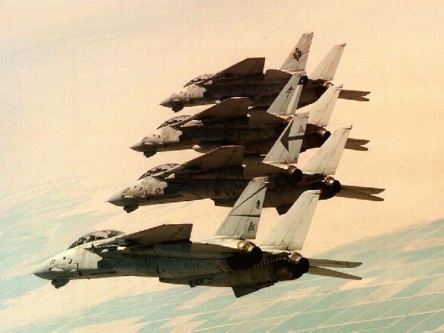 F-14s from all four US Naval Reserve squadrons. Moving from closest to furthest we have VF-302, VF-301, VF-202 and VF-201, the latter being the only squadron still active, all the others having disestablished.