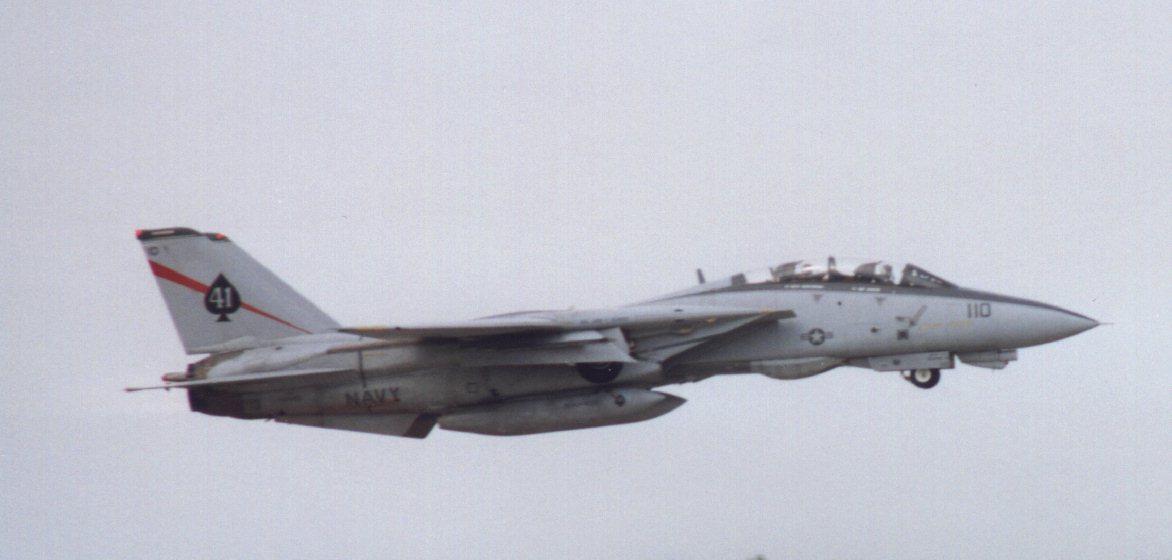 Image Courtesy of Dennis Johnson 'AJ110' tucks up the undercarriage to prepare for a display at the 1997 NAS Oceana airshow.