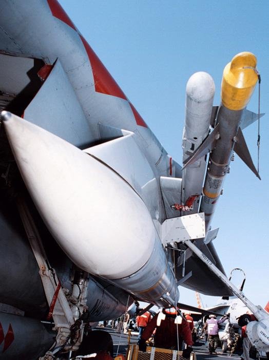 U.S. Navy Photo Live Phoenix and Sidewinder missiles sit underwing a VF-102 F-14B onboard USS George Washington (CVN-73).
