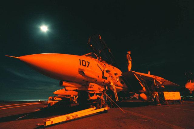 Diamondbacks F-14B "Update" on the deck of USS George Washington during cruise work-ups, late 1997.