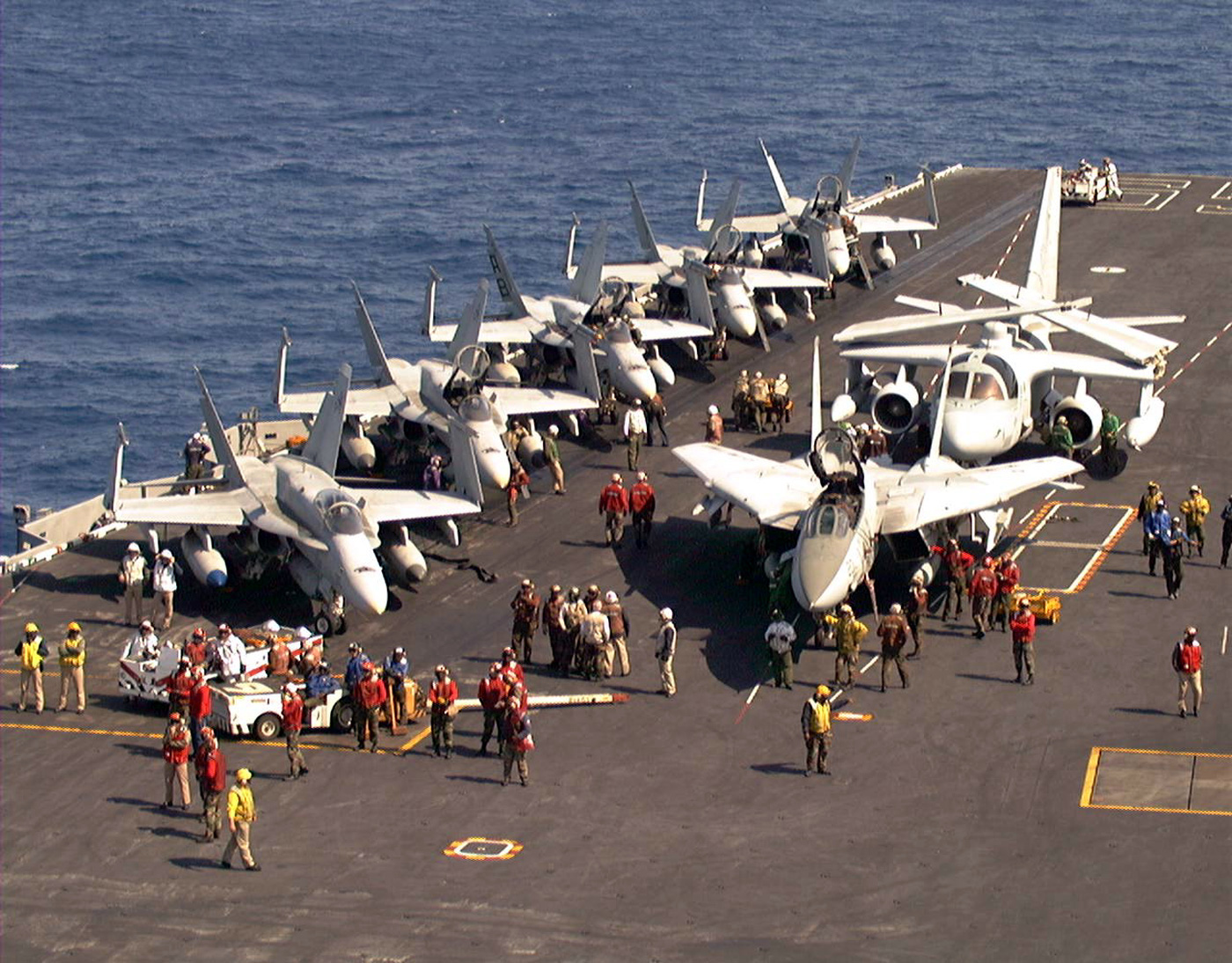 US Navy Photo VF-103 F-14B on deck of USS Enterprise (CVN-65) during the 1996 cruise, during which LANTIRN received it's first service tests.