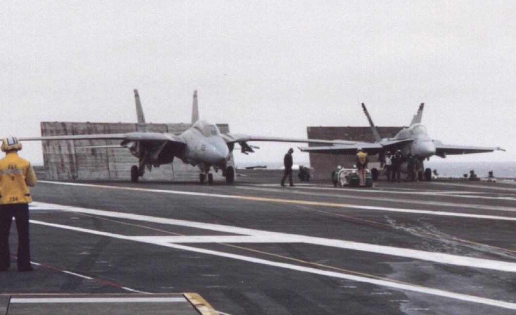 Image Courtesy of Dennis Johnson 'AC102' launching from USS Enterprise in October 1997. The front nose gear is compresed, indicating the 'cat shot is moments away.