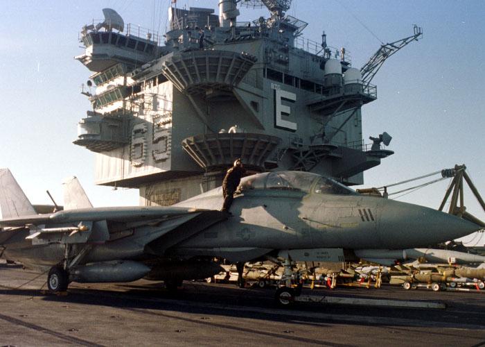 US Navy Photo AC111 is manouvered onboard USS Enterprise during Operation Desert Fox, December 1998.