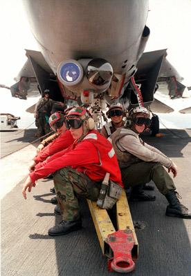 Image Courtesy of the Unnofficial VF-2 Bounty Hunter's Page VF-2 personnel take a well earned rest during the 97 Westpac cruise.