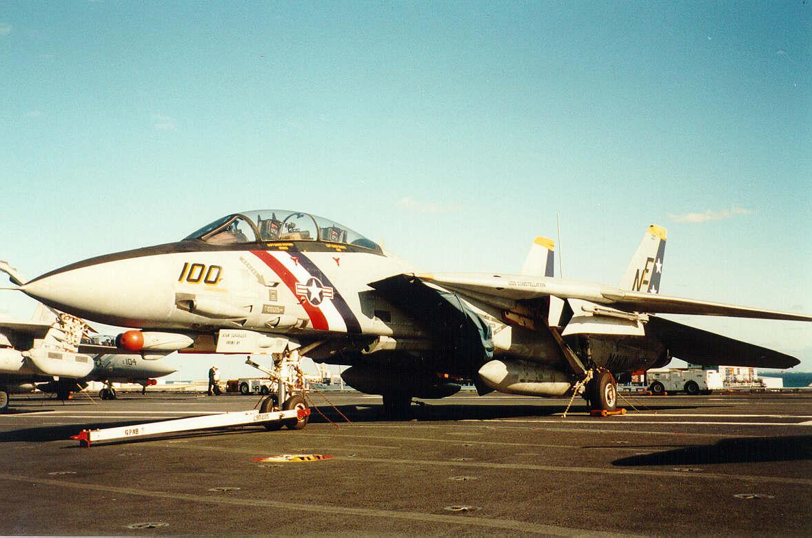 Image Copyright Mark Richards F-14D-165-GR BuNo. 163895 TARPS capable VF-2's CAG bird enjoying the sun in the port of Fremantle, 1997. The front portions of the underfuselage Phoenix pylons have been removed.