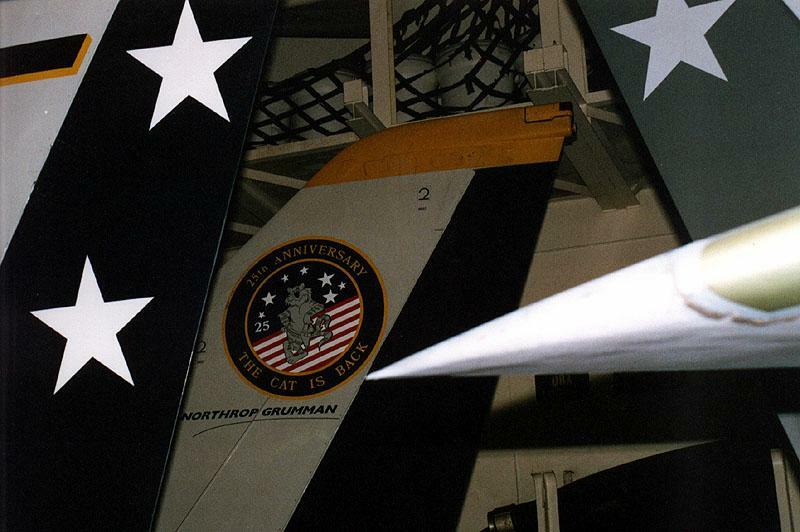 Image Copyright Rodger Kelly F-14D-85-GR BuNo. 159630 NE101 in the hangar deck of USS Constellation, port visit to Australia, 1997.