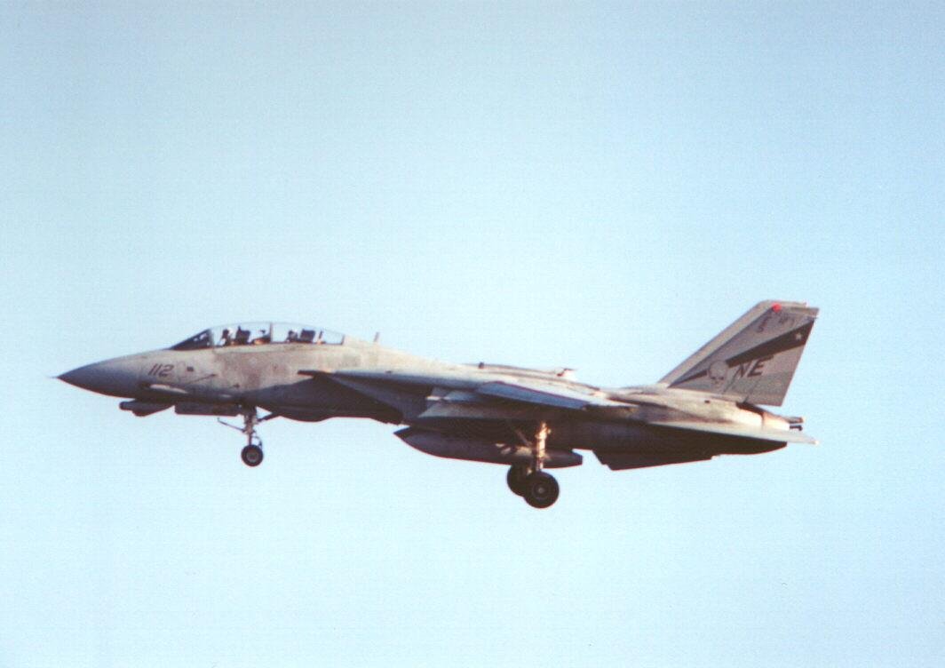 VF-2's latest colour scheme, late 1998, seen as Bullet 112 lines up for landing at NAS Oceana.