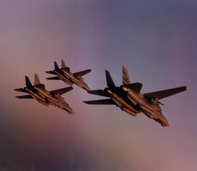 US Navy Photo, Courtesy of the VF-2 Website VF-2 F-14D's, note the aircraft on the left has an earlier paint scheme to the rest.