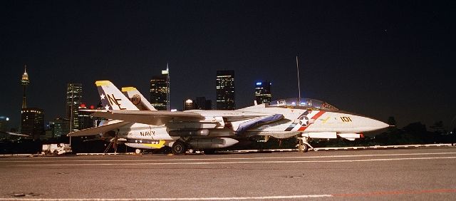 US Navy Photo, Courtesy of the VF-2 Website F-14D-85-GR BuNo.159630 NE101 basks in the night lights of Perth Harbour.
