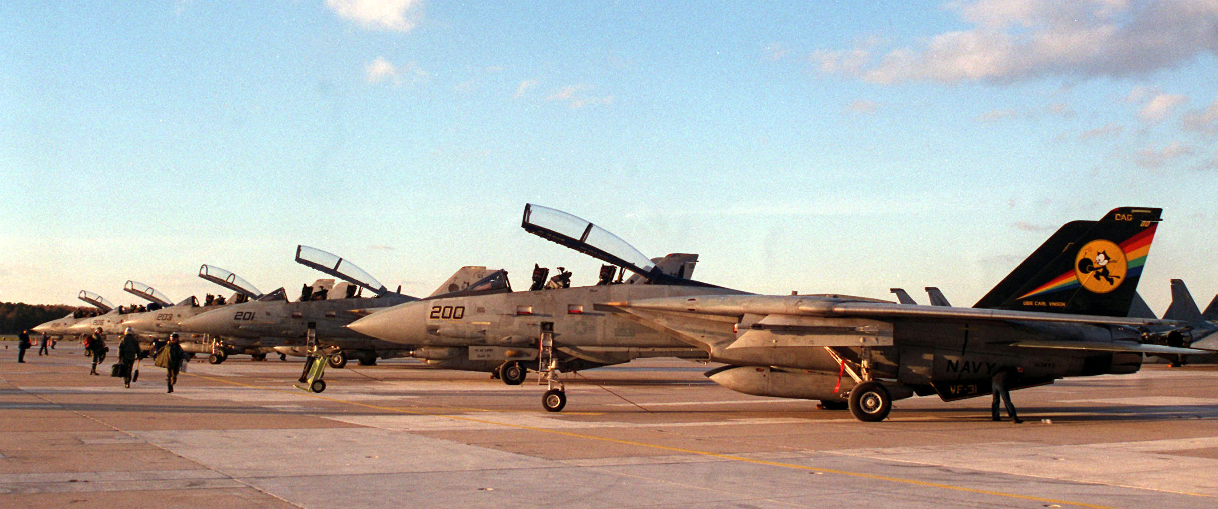 VF-31 aircraft line up after arriving at NAS Oceana, April 1997.