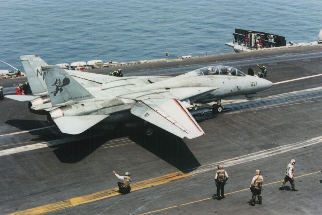 US Navy Photo by LT. J. Muse A well worn NK107 strains at the cat onboard USS Abraham Lincoln (CVN-72), 1998.