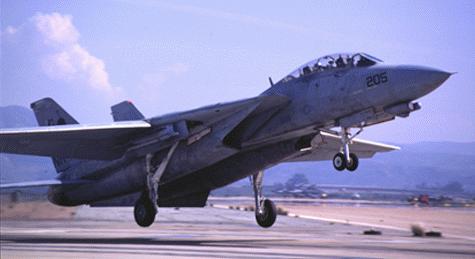 Tomcat '205' doing a Field Carrier Landing Practice (FCLPS) landing at NAS Miramar, February 1995.