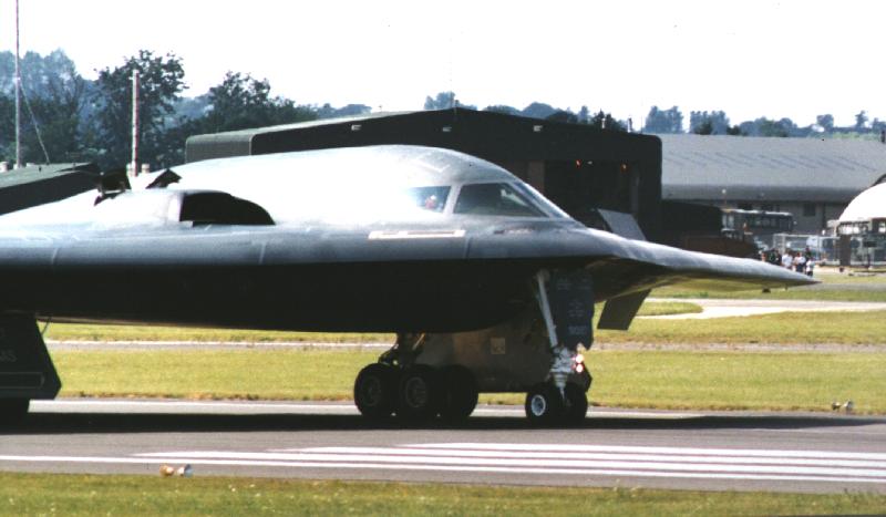Having landed the B-2 taxies to a parking area. AF:89-0127 'Spirit of Kansas' 19th July 1997, RIAT '97