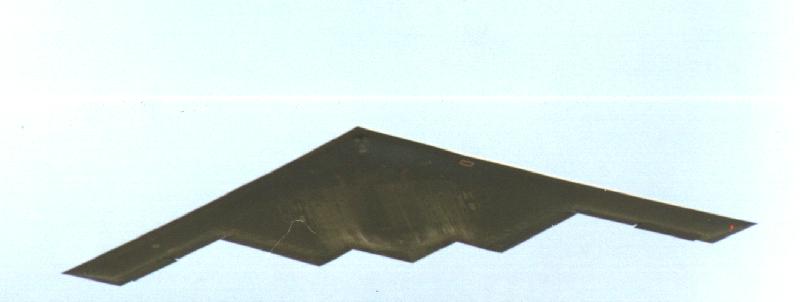 B-2 flying arriving at the 1997 Fairford air show. AF:89-0127 'Spirit of Kansas' 19th July 1997, RIAT '97