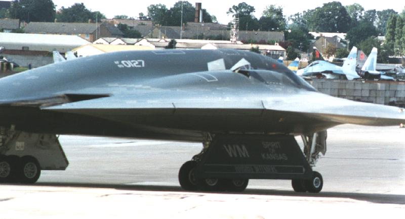 The slogan on the main gear door reads 'Invisible Defenders' AF:89-0127 'Spirit of Kansas' 19th July 1997, RIAT '97