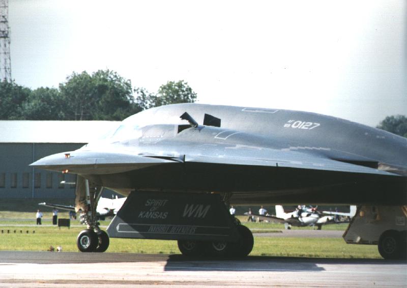 Starting to roll, although it may be quiet in the air for take offs the B-2 makes just as much noise as most large jets (although it is a fair bit quieter than the B-1B). AF:89-0127 'Spirit of Kansas' 19th July 1997, RIAT '97