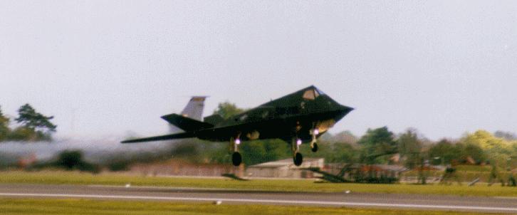 F-117A taking off from RAF Mildenhall, AirFete 1996.