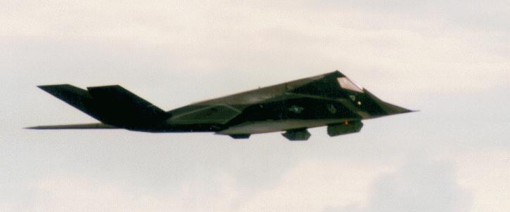 F-117A cleaning up to begin the display, RAF Mildenhall AirFete 1996.