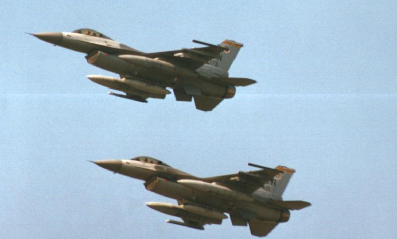 F-16's from the 79 FS, 20 FW formed part of a large scale USAF flyby at the end of each day during RIAT 1997. 19th July 1997