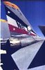 Recent Wing policy has dictated that many F-14 units tone down their aircraft, even the CAG birds. Regulations now state that unit markings will be restricted to the tail only and painted in shades of grey. Units differ in the speed and extent to which they are applying these rules. VF-102 Diamondbacks have repainted all their aircraft in a new scheme, which sees the return of the 'AB' code inside a diamond (last used on the F-14A). The aircraft also have a line of diamonds at the top and bottom of the fin. VF-31 Tomcatters have lost the gloss black tail on their CAG bird, but at present retain Felix inside a yellow circle on a rainbow stripe. VF-103 Jolly Rogers deployed onboard Ike with all their aircraft carrying white skull and crossbones on a matt black tail. There was no sash across the front fuselage. VF-211 Fighting Checkmates recently repainted NG 101 with Bluto, the squadron's mascot when it was first formed over 50 years ago. Bluto, dressed in a Santa suit, made flights in the Persian Gulf as part of VF-211's last cruise. It is not confirmed whether he will be a permament addition to the aircraft or not. VF-41 Black Aces have changed style, losing the red tail stripe. Instead of placing '41' inside the Ace, it now features a stylised 'AJ' for CVW-8.