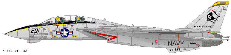 Unfortunately in the climate of budget cuts and air wing reorganisation VF-142 has gone the way of many F-14 squadrons, being disestablished in April of 1995. A rather unique memorial to the squadron could be found in the Smithsonian Aerospace Museum, which had a replica of a VF-142 ready room amongst its exhibits, although whether it is still present is uncertain.