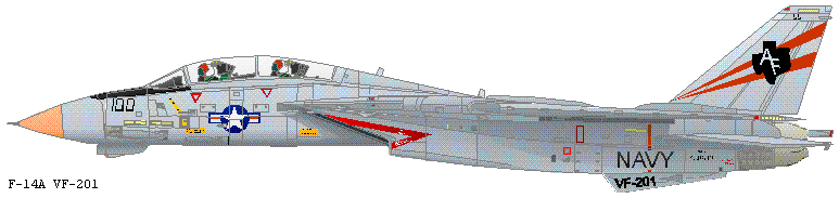 Aircraft marked with a * are the aircraft that are wired to take the TARPS reconnaissance system. All of VF-201's aircraft are Block 140 standard F-14A's, the latest standard.