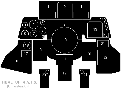 | 7. | Standby Attitude Indicator | 15. | ECM Override Control | 23. | ICS Foot Button | |