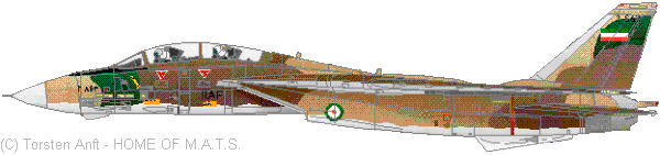 BuNos 160299 to 160378 (F-14A-90/95-GR) were built for Iran with the last one (BuNo 160378) remaining in the US after the islamic revolution in Iran. This particular aircraft was put into storage at Davis-Monthan AFB until it was refurbished and used at the PMTC at Point Mugu, CA. After the islamic revolution (Islamic Republic of Iran Air Force) and reorientation of Iran and its good relations to the USSR the Navy was quickly changing its AN/AWG-9 radar and AIM-54 missile systems. That way any data fallen into the hands of the enemy would be useless to them. In the 1990s some 20 of 79 F-14s are said to be still in flying condition, with the other airframes serving as spare part platforms. According to the Flight International magazine (Sept. 1999), Iran has managed to keep operational a large number of its F-14 fleet until today. Iran - with the help of Russian experts & technology - is comprehensively upgrading its F-14 fleet involving a new radar, engine and a glass cockpit. This will not only keep their F-14s operational but will give Iran also a potent F-14 force well into the next century. (Not mentioned by Flight International is the major problem of airframe fatigue. Even with Russian technology, this problem cannot be solved and remaining airframe hours will certainly end the Iranian F-14 era some day.) Also, the following article appeared in the World Air Power Journal (Winter 1999): "In the early 1970s, at the height of the Cold War, Soviet MiG-25s began to make high-speed, high-altitude violations of Iranian airspace with alarming regularity. Iranian Airforce F-4Es were no match for the superior speed and operational ceiling of the Soviet MiGs. The pro-Western regime in Iran placed an order for 80 F-14A Tomcats in 1973 to counter the Soviet threat. The 79th Tomcat was delivered just before the Iranian Islamic Revolution. The Islamic Republic of Iran severed ties with the US and, in so doing, lost US technical support, while becoming the subject of an arms embargo that is still in force today. IRIAF F-14s were at first kept aloft by the large stockpile of spare parts inherited from the previous regime. Iran also procured parts from US Naval stores covertly; in 1987 the US Navy had to cancel several F-14 flights due to a shortage of spare parts which later mysteriously reappeared in Iran. Embroiled in a war imposed by Iraq, the IRIAF was left with no alternative but to ground part of its Tomcat force for cannibalisation of spare parts to keep the others flying. The remaining IRIAF F-14s were distinguished in air combat patrol work and air defence, and were even operated as AEW platforms. Iranian F-14s claim between 35 and 40 Iraqi fighters, and the presence of one or two Tomcats was usually enough to send the Iraqi jets scurrying away. Only one Iranian Tomcat was confirmed as shot down in air-to-air combat in eight years of war, caught off-guard by a flight of Iraqi Mirage F.1s while returning to its base. More F-14s were lost to the quirky Pratt & Whitney TF30-414A engines, which suffered fan blade losses, compressor stalls and flame-outs during air combat, combined with the Tomcats tendency to flat spin before the re-light procedure could be initiated. Today, the IRIAF retains some 50-55 F-14s, but only 28-30 are active. Iranian Aviation Industries undertake the servicing and overhaul of these aircraft; indeed, to keep the Tomcat flying has become a matter of pride and a symbol of Iranian defiance. IRIAF F-14s are no longer stationed at Isfahan, but have been relocated further south to Bushehr to protect Iran's vital oil installations. There are persistent rumours in Iran of a major life extension programme for the F-14 Tomcat. This is said to involve an avionics upgrade from analogy to digital, replacement of the AWG-9 radar with an equivalent system and an engine replacement. These improvements may sound ambitious for a developing nation, but given the types popularity with IRIAF aircrews, combined with the recent achievements of the Iranian Aviation Industries, they cannot be easily dismissed. Iran is said to have showed interest in the MiG-31M as a possible replacement for its F-14s on several occasions. It is interesting to note that an aircraft that has its origins in the MiG-25, could possibly become the replacement for the F-14 in Iranian service." F-14A ![]() |