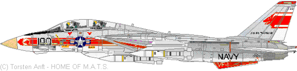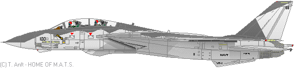 F-14 Tomcat Squadrons: VF-74 | VF-84 | VF-101 | VF-102 | VF-103 | VF-111 | VF-114 | VF-124 | VF-142 | VF-143 | VF-154 VF-191 | VF-194 | VF-201 | VF-202 | VF-211 | VF-213 | VF-301 | VF-302 | VX-4 | VX-9 NAWC | NATC | NFWS | NASA | Iranian Air Force | Carrier Airwings | Squadron Awards F-14 Tomcat: Other Topics: Start Page Foreword FAQ Updates Copyright © 1997-2001 by Torsten Anft |