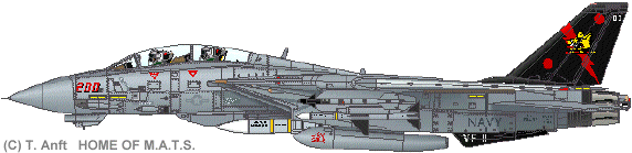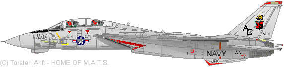 F-14 Tomcat Squadrons: VF-74 | VF-84 | VF-101 | VF-102 | VF-103 | VF-111 | VF-114 | VF-124 | VF-142 | VF-143 | VF-154 VF-191 | VF-194 | VF-201 | VF-202 | VF-211 | VF-213 | VF-301 | VF-302 | VX-4 | VX-9 NAWC | NATC | NFWS | NASA | Iranian Air Force | Carrier Airwings | Squadron Awards F-14 Tomcat: Other Topics: Start Page Foreword FAQ Updates Copyright © 1997-2001 by Torsten Anft |