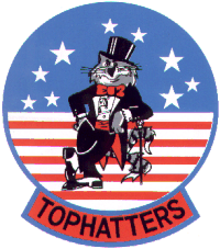The history of Fighter Squadron FOURTEEN dates back almost to the origin of Naval Aviation. Its record of continous active service began in September 1919 making it hte Navy's oldest active squadron. Since its inception, the squadron has flown 24 different type aircraft, had its designation changed 14 times, operated from 17 different aircraft carriers plus several battleships, and has been commanded by 63 Naval Officers. In the past, the squadron has been assigned many different missions including patrol and observation in its early years, and scouting, attack, and fighter when associated with carrier based operations. Its carrier career started with the US Navy's first aircraft carrier, the USS Langley (CV-1) in 1926. The squadron, then designated Fighter Plane Squadron ONE, established a record for carrier landings in a single day. Flying the TS-1 aircraft, 127 traps were copleted by the end of flight operations. The Tophatters proved to be a formidable foe during WWII. While embarked in USS Ranger (CV-4), the squadron provided air support for the invasion of North Africa in November 1942. During the 4 days of November 8 - 11, pilots destroyed 16 enemy aircraft. Flying the SBD Dauntless dive bomber, the squadron participated in the first American naval air strike against German forces in Norway's inner channel. In November 1944, the squadron transferred to the Pacific Fleet and participated in the Leyte Campaign embarked in USS Bunker Hill (CV-17). Transferring to the USS Essex (CV-9), the squadron bombed fortifications on Formosa in January 1945., supported the assault on Iwo Jima in February, participated in the first naval carrier strikes on Tokyo, and completed Pacific combat operations with strikes on Okinawa in early March 1945. In 1949, the Tophatters received their current designation as VF-14 with an all weather intercept mission. In May 1963, the Tophatters transitioned to the F-4B Phantom II and on 23 January 1964, they became the first Phantom squadron to operate aboard USS Franklin D. Roosevelt (CVA-42). In June 1966, the Tophatters again joined the Pacific Fleet and conducted air strikes and supporting missions against military targets in North Vietnam. During this combat deployment, the squadron flew 1,688 hours on 967 combat sorties and delivered 651,624 pounds of ordnance, in addition to fulfilling its traditional combat air patrols and fighter escort mission. With the commisioning of USS John F. Kennedy (CV-67) in September 1968, the Navy's oldest squadron found itself on the newest carrier. After four highly succesful Mediterranean deployments, the squadron transitioned to the Navy's newest fighter, the F-14A Tomcat in January 1974. Between June 1975 and January 1976, the Tophatters deployed about USS John F. Kennedy for the first Atlantic deployment of hte F-14A. In October 1978, Tophatters aircrews set an all-time, one month F-14A flight hour record of 977 hours while deployed in the Mediterranean. Commencing local carrier operations in February 1980, Fighting FOURTEEN continued its high tradition of excellence by winning the &uot;Fighter Olympics" with the highest grades ever awarded by the VF-43 adversaries and recording a perfect (100%) kill rate with all missiles fired during Type Training and Readiness inspections. In August 1980, the Tophatters deployed to the Mediterranean Sea with Carrier Air Wing ONE aboard the USS John F. Kennedy. During this deployment, VF-14 won the Battle "E", establishing a two year hold on the coveted Battle Readiness Award. In July 1981, the Tophatters became a member of CVW-6. The squadron deployed in June 1982 aboard USS Independence (CV-62), and in July was named "Best Fighter Squadron" by Commander Fighter Wing ONE for hteir superb performance in the Atlantic Fleet Fighter ACM Readiness program (FFARP) against VF-43 adversaries. October and early November 1983 found the Tophatters logging combat time in support of operation "Urgent Fury" in Grenada. This was the squadron's first combat since Vietnam, and the first in the F-14 Tomcat. After playing an integral part in the liberation of Grenada from Cuban insurgents, VF-14 proceeded east to the Mediterranean Sea with CVW-6 to participate in contingency operations off the coast of Lebanon. In early December 1983, the Tophatters were again called upon to provide combat air patrol and fighter escort support for elements of the multi-national forces in Beirut, proving once again that the oldest active squadron is always ready to fulfill its traditional mission. On April 1, 1985, VF-14 Tophatters returned to USS John F. Kennedy and CVW-3, completing four and one-half years of successful operations with USS Independence and CVW-6. The Tophatters spent the rest of 1985 on a turnaround schedule that included eleven detachments to various parts of the USA and Canada. In June, VF-14 participated with the Air Force in RED FLAG 85-4, the most realistic overland aerial war games to date. In August, during the annual Fleet Fighter ACM Readiness Program (FFARP), VF-14 was the first to fight against the newest adversary aircraft in the Navy's inventory, teh Israeli Aircraft Industry F-21A Kfir. On August 18, 1986, the Tophatters and the USS John F. Kennedy departed on a Mediterranean Cruise which was extended for one month due to the Lebanon Hostage Crisis. Upon their return, the Tophatters completed a higly successful missile shoot as well as performing the best of any fighter squadron in hte 1987 FFARP program. In February 1988, the squadron detached to NAS Fallon, Nevada, and began extensive workup phase for the 1988 Mediterranean Cruise. While on cruise, VF-14 played a major role in several successful exercises including National Week, Operation Seawind with Egypt, joint NATO exercises, and Display Determination 88. In 1989, VF-14 was presented with the CINCLANT "Grant Slam" Award for a perfect missile firing record. The competition for the award included all East Coast fighter and fighter/a