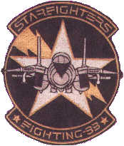 September 1943 - October 1993 Established in September 1943, VF-33 were first equipped with the Grumman F6F "Hellcat". Their first operation was to the Soloman islands, the first time a US Navy squadron has used the F6F in combat. VF-33 was land based at this time, supporting the island hopping Pacific campaign. VF-33 disestablished in July 1946. VF-33 was re-established on the 11th of October 1948, this time flying the famous Chance-Vought F4U "Corsair". After seeing action during the Korean war (and being awarded the Navy Unit Citation for their success) several changes of equipment and location followed in quick succession. By 1962 the unit was flying F8U-2NE "Crusaders" from the world's first nuclear powered aircraft carrier, the USS Enterprise (CVN-65) and as part of this team took part in the blockade of Cuba. In 1964 the squadron started to become familiar with the aircraft which (in two different versions) would last them the next 17 years and became the backbone of Naval Fighter Aviation. The plane was, of course, the F-4 "Phantom II". Initially equipped with the F-4B, VF-33 set a new Atlantic Fleet record by winning the CNO Aviation Safety Award for four years in a row (1961-64). However VF-33's time with the F-4B was short and in 1967 they upgraded to the F-4J. The new F- 4 featured a different radar, higher thrust engines, slatted tailplanes, extra fuel cells and larger main wheels (to handle the increased weight). Almost as soon as the new F-4's were received VF-33 was once again deployed to combat, this time to South-East Asia onboard USS America (CV-66). During their time in theatre VF-33 dropped over 3,000,000 pounds of ordnance! This was in the space of 4000 combat hours flown over 5 months. On the 10th of July 1968 a VF-33 bird downed a MiG- 21C, the first air to air kill by an East Coast Fighter squadron over N.Vietnam. After returning from Vietnam VF-33 continued it's association with CVW-7 and USS Independence (CV-62), deploying most years. Several awards were won during this time, including the CNO safety award in 1969 and 1970. The 75-76 cruise saw the squadron win the Golden Tailhook Award, recognising it's skill at carrier landing. February 1979 saw VF-33 achieve 3 years of accident free flying. In 1981 VF-33 entered a new era, with the introduction of the F-14A Tomcat. As the transition took place VF-33, who up until this time had the official squadron name of "Tarsiers", began to unofficially use their callsign, "Starfighter" as the squadron name, perhaps inspired by the huge increase in capability the F-14A brought.