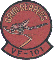 The original Grim Reapers were commisioned as Fighter Squadron TEN on 3 June 1942 at NAS San Diego flying the F4F Wildcat. They deployed aboad the USS Enterprise (CV-6) to the Southern Pacific where they participated in numerous engagements including the Battle of Guadalcanal. After returning to the US, VF-10 reformed at NAS Sand Point flying the F6F-3 Hellcat and again deployed to the South Pacific aboard the USS Enterprise. During its second combat tour, VF-10 participated in operations against the Marshall ISlands, Jaluit, Emirau, Western Carolinas, Hollandia, Truk Lagoon, and in the Battle of the Phillipine Sea (Marianas Turkey Shoot). The squadron returned to hte East Coast at NAS Atlantic City and transitioned to the F4U-D Corsair in which they deployed strikes against the Ryukyu Islands, Kyushu, Okinawa, and Wake Island. VF-10 returned to NAS Alameda where it was decommissioned in November 1945. VF-101 was commisioned at NAS Cecil Field on the 1st of May. Initially the squadron was equipped with the FG1-D Corsair and it was in this type that they conducted raids during the Korean War. In late 1952 VF-101 began to receive jet powered F2H-1 Banshee's. VF-101 deployed with their new mounts to the Mediterrenean Sea, taking part in exercises in Southern Europe and the Middle East. Another change in equipment came in August of 1956, when VF-101 received the F4D-1 Skyray, their first radar equipped aircraft. Just under two years later, in April 1958 VF-101 saw a change in role, when it was merged with the Fleet All Weather Training Unit Atlantic and moved from being a deployable unit to the training of all weather fighter pilots, both on the F4D-1 and the F3H-2 Demon. In becoming part of the training structure VF-101 became part of Readiness Attack Carrier Air Wing 4. June 1960 saw VF-10 enter a new era, when Detatchment "A" was created at NAs Oceana to operate the F4H-1, later F-4B, Phantom II. By the end of 1962 both the Skyray and Demon had been phased out and in February of 1963 Detatchment "A" was disestablished, F-4 training moving to NAS Key West. The 1st of May 1966 saw another detatchment formed at NAS Oceana, taking over the roles of training replacement pilots and RIO's in the areas of aerial refuelling, carrier qualification and conventional weapons. The Key West unit concentrated upon air-to-air combat, missile firing and radar intercept techniques. In August of 1967 VF-101 introduced the second generation of the F-4, the F-4J, to squadron service. VF-101's administrative command, Readiness Attack Carrier Air wing Four, was diestablished on the 1st of June 1970, with VF-101 shifting to the control of Command Fleet Air Key West, but this move lasted less than a year, the Grim Reapers moving to the control of Commander Fleet Air Norfolk in February 1971. By April of that year the move from NAS Key West was completed, with a detatchment remaining at Key West. VF-101's third change of control happened in July, when they moved under the command of Commander Fighter Wing 1. January 1976 saw the beginning of VF-101's time with the F-14, when it started training Tomcat air and groundcrew as well as those for the F-4. The first F-14 conversion class began in June to support VF-41 and VF-84 in their move from the F-4N to the F-14A. 1975 and 1976 saw VF-101 pick up the CNO Aviation Safety Awards and in November of '76 the squadron had received its fourth Safety Citation due to 36 continuous months of without air or ground accident. With the increasing number of F-14 units in the fleet it was decided to form separate units for both F-14 and F-4 training. Thus on the 5th of August 1977 VF-101 was split into two squadrons, VF-101 to continue F-14 training on the East Coast while a new squadron, VF-171, was created to carry on F-4 East Coast training. VF-171 lasted in this role until 1984, when, with the withdrawl of the F-4 from active fleet units it was disestablished.