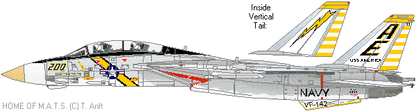 F-14 Tomcat Squadrons: VF-74 | VF-84 | VF-101 | VF-102 | VF-103 | VF-111 | VF-114 | VF-124 | VF-142 | VF-143 | VF-154 VF-191 | VF-194 | VF-201 | VF-202 | VF-211 | VF-213 | VF-301 | VF-302 | VX-4 | VX-9 NAWC | NATC | NFWS | NASA | Iranian Air Force | Carrier Airwings | Squadron Awards F-14 Tomcat: Other Topics: Start Page Foreword FAQ Updates Copyright © 1997-2001 by Torsten Anft |
